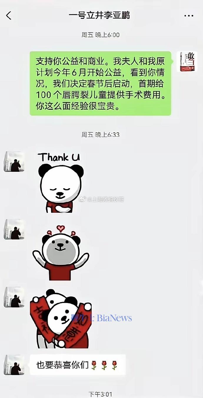 随后,大量网友涌入嫣然天使基金捐款入口进行捐款。李亚鹏发视频致谢并透露,过去两天内已有超18万名捐赠者累计捐款约900万元,这笔善款预计可完成约1000台唇腭裂手术。