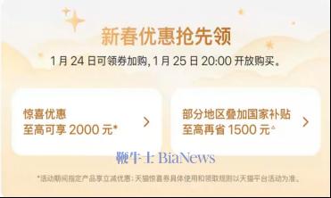 目前,天猫苹果Apple Store官方旗舰店已上线“新春优惠”促销活动页面。促销信息显示,用户今日即可领券加购,1月25日20:00可开放购买。本次促销活动中,最引人注目的降价举措当属“至高可享2000元”惊喜优惠和“部分地区叠加国补至高再省1500元”两项。