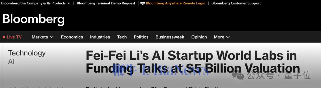据彭博社消息:李飞飞创办的World Labs正在以约50亿美元估值进行新一轮融资,融资规模最高可达5亿美元。