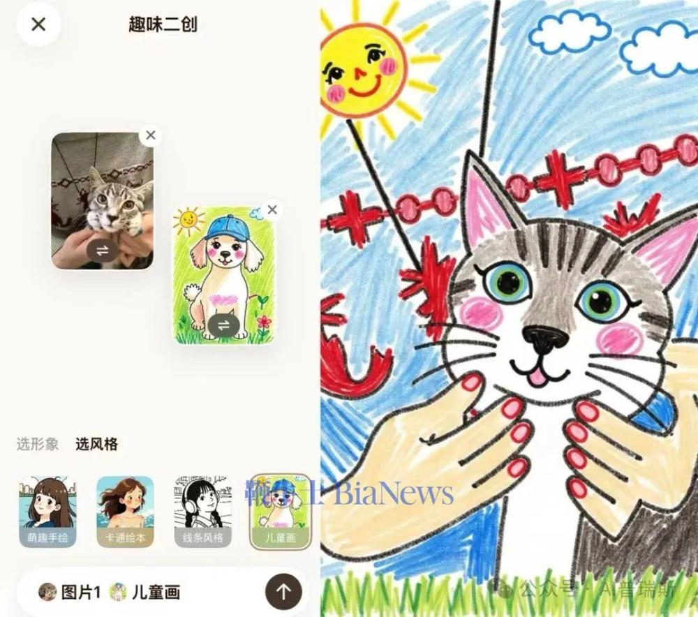 在群里聊天斗图输了怎么办?以前得去到处存图,现在直接在派里发一张自家宠物的丑照,点击旁边的“二创”按钮,输入指令“生成儿童画版本”,AI瞬间就能给你整出一套独一无二的表情包