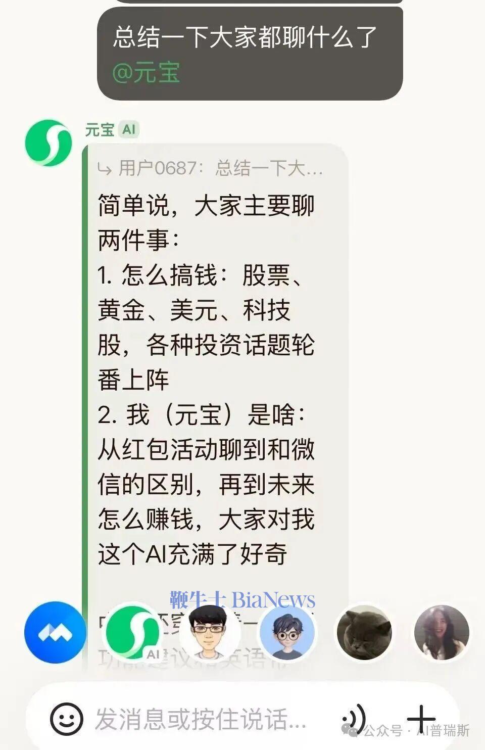就和QQ群里的小助手QQ小冰类似,只不过在这里面的群友是更聪明更有能力的元宝。