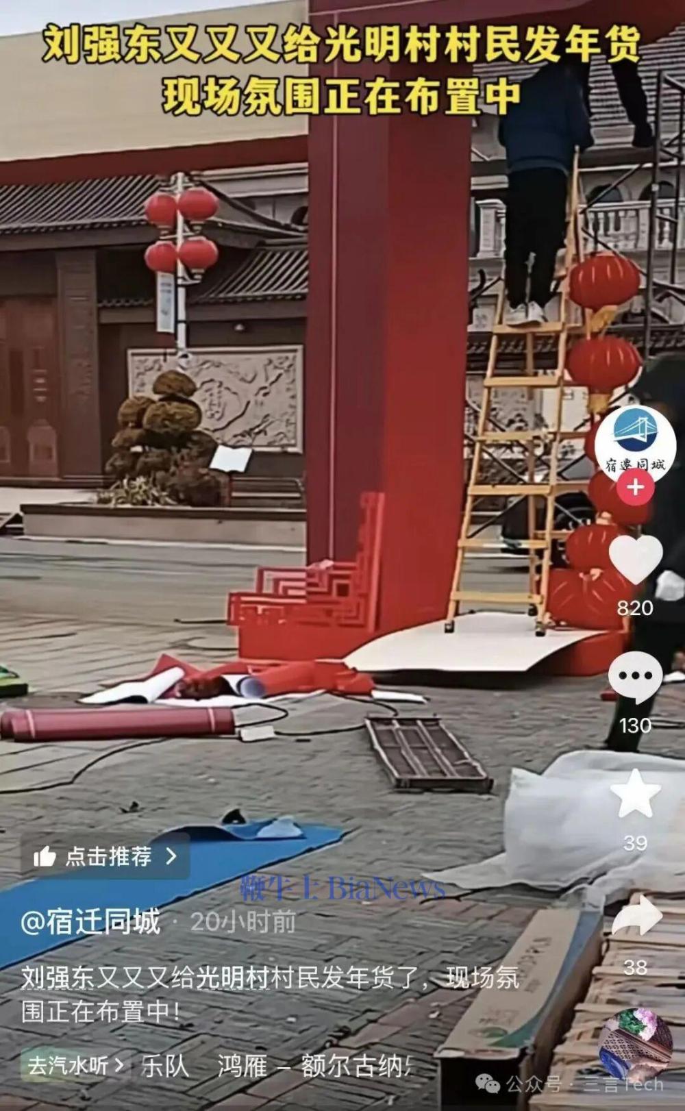 今年刘强东送的年货一样很丰富,从粮油、化妆品、电热毯到手机等各种生活和数码产品。此外,1月28日光明村还将有一场特别的"村晚",有京东青春采销的歌舞表演,有地道的宿迁民俗艺术,还有机器人表演、AI互动等等并且还有全程直播。据宿迁网友发布的消息,年货将于29-30号两天发放。目前,刘强东老家门口和广场已经清扫干净,现场也在搭建中。2024年,刘强东为村里1300多户村民,每户送去了1件羽绒服和1份坚果礼盒。2025年,其向约1500户村民发放了涵盖吃穿用度的年货,总价值超3000万元,其中为村里60岁以上老人每人发放1万元现金红包,为当年小学老师每人发放10万元现金红包。据了解,刘强东1974年出生于江苏省宿迁市宿豫区来龙镇光明村,小学、初中均就读于当地学校,高中就读于宿迁市,在大学时代之前,刘强东的生活和成长一直没有离开过农村。刘强东曾在公开场合表示,自己考上大学时,全村为他凑了76个鸡蛋和500元。
