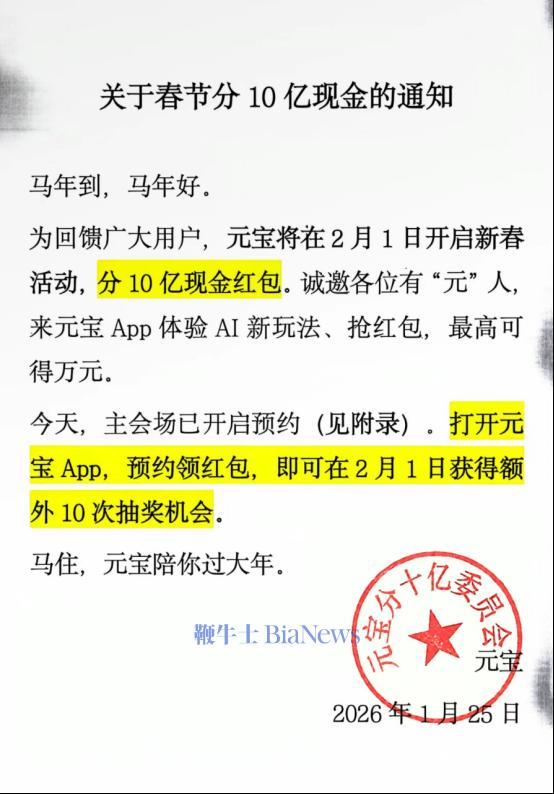 25日腾讯元宝刚刚宣布将在春节期间向用户发放10亿现金红包,当日晚间,百度App ⽂⼼助⼿就紧急宣布和用户分5亿红包。简单粗暴的数字游戏背后,是AI助手市场的明争暗斗。