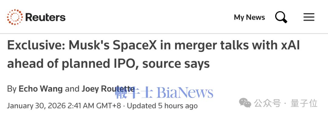 根据路透社披露的消息,知情人士表示SpaceX与xAI正进行并购谈判,计划通过换股方式合并。