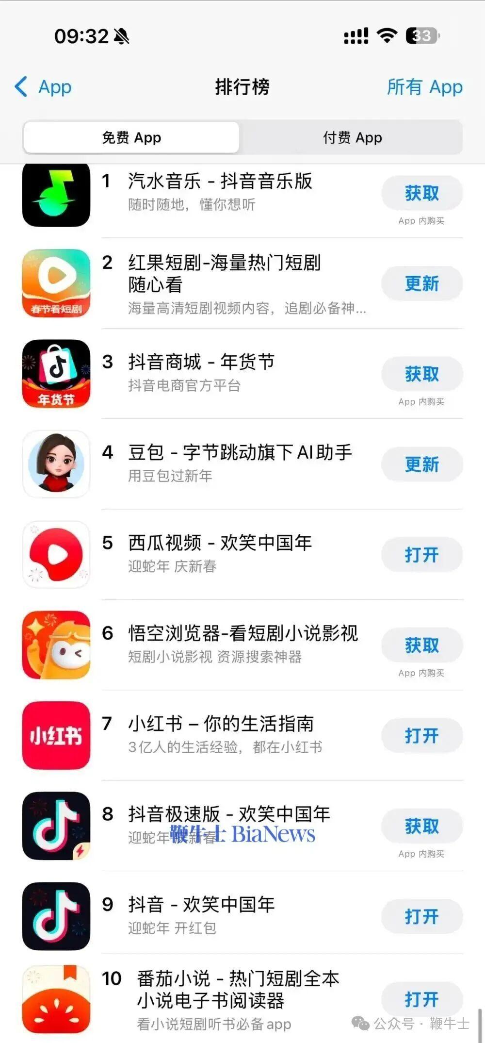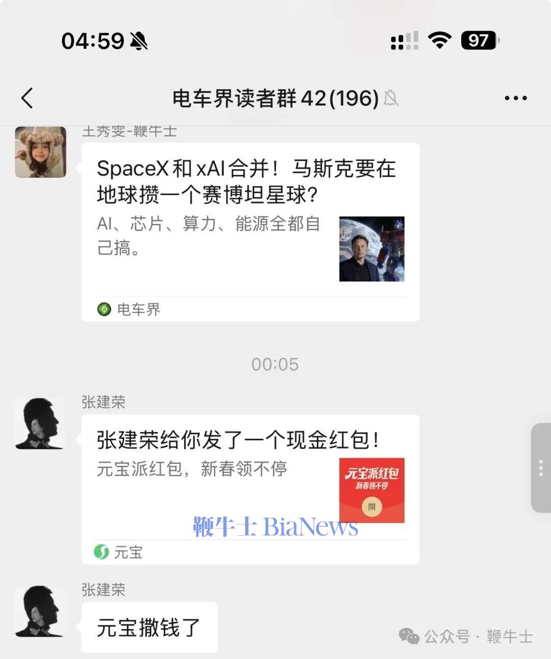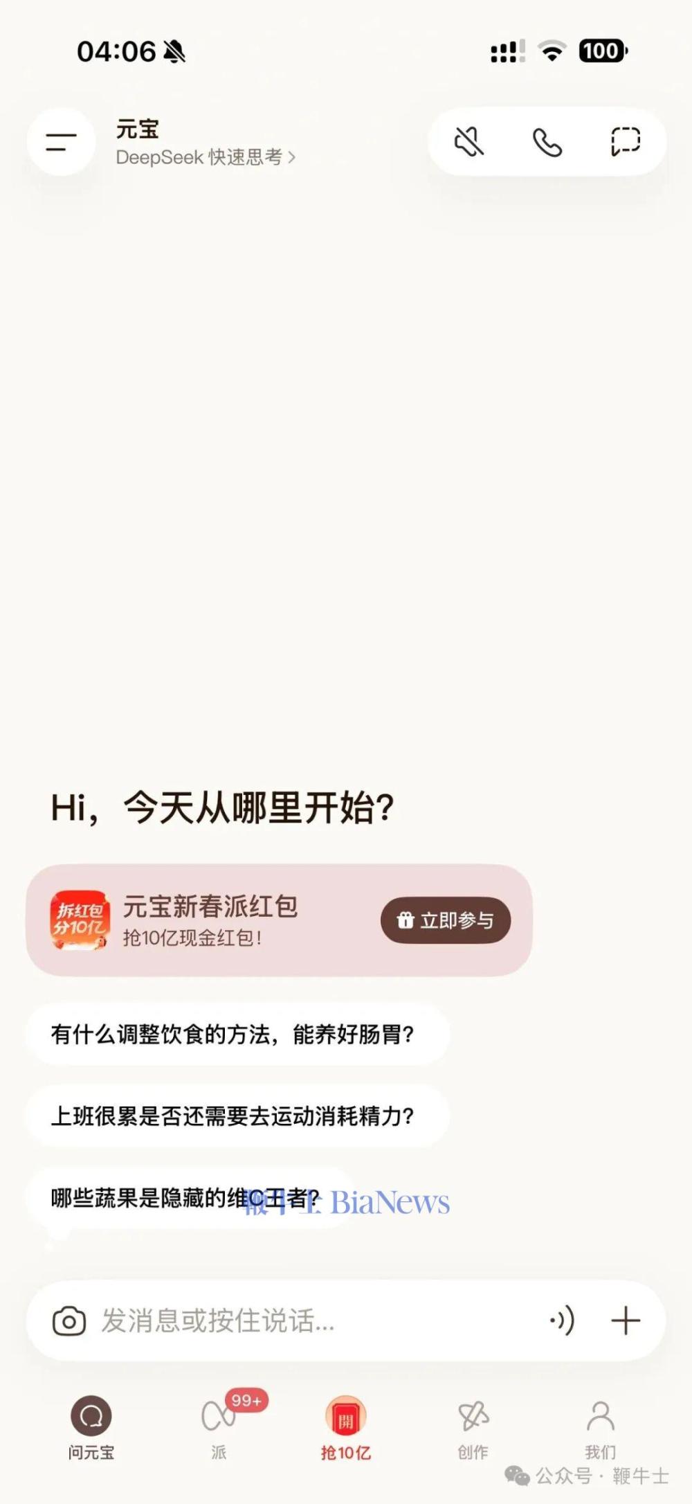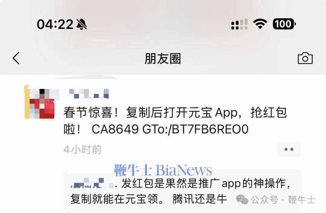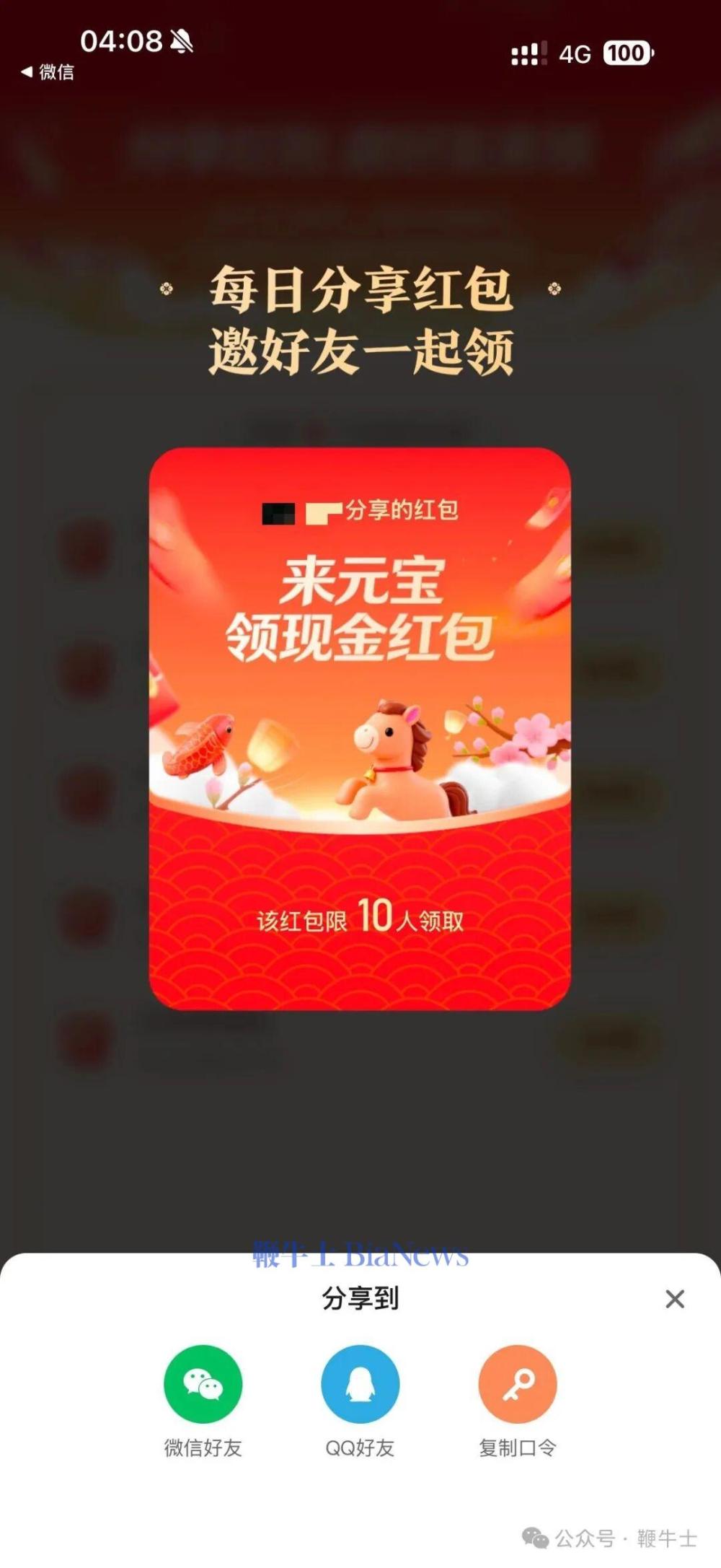 微信及WeChat合并月活已经达到14.14亿,QQ移动终端月活为5.17亿。这是啥概念?两个月活加起来超过19亿的APP同时在推广元宝红包活动,不仅会拉新,还会促进使用活跃度。要抢红包就需要下载元宝APP,要想抢更多红包就要做任务。这是妥妥的帮元宝拉新和增加日活月活。红包是真给啊,这谁顶得住。马化腾在年会上说的,希望元宝抢红包重新微信抢红包的辉煌,目前看起来在接下来的近20天时间会全民沉迷抢红包。目前元宝已经在苹果免费榜排名第二,第一是字节豆包,前十名有4款字节系产品,阿里席有两款,蚂蚁阿福和千问。抢红包拉新下载只是第一步,通过活动让用户开始体验和使用元宝是第二步。无论是体验新功能,还是使用模板生成内容,让刚下载元宝的用户可以熟悉AI助手功能。不得不说,元宝这10亿红包撒币行动是一次完美的营销活动,但从消极方面来说,接下来的20天内,用户将在朋友圈、QQ群和微信群受到全方位的广告信息轰炸。来看看鞭牛士和兄弟媒体的各大媒体行业群,手快的已经开始分享红包在群。用户会反感吗?大多数人应该不会,虽然知道这是广告信息,但毕竟也是真金白银的红包。至于没有下载APP的用户是否会为了抢红包下载,这部分数量有,但别忘了,拼多多的砍一刀活动拉动了多少人参与,已经有很多人习惯如此抢红包,如今在泼天流量矩阵天天看到红包,第一次拒绝下载,架不住天天看到,这个拉新应该会相当夸张。元宝送红包活动不新鲜,但确实很有用,老对头字节去年就干过。相似的短期营销做法,收到的结果可能也会相似,我们预计元宝会极速登顶下载榜榜一,并在2月霸榜,也预计字节全家桶红包活动也会展开对冲。业内人士托马斯毒舌点评元宝红包活动,翻译一下就是,用简单粗暴活动指引AI革命,让人忍俊不禁。从短期营销推广角度来说,豆包和元宝坐拥超级流量矩阵,用最简单最原始的方法就可以实现拉新和促活跃度,阿福和千问怎么办?从用户数量来看,QuestMobile数据显示,淘宝月活也在10亿左右,日活4亿。支付宝月活9亿,日活预计7亿左右。也是巨量超级APP,发红包搞拉新也不是不行,但就是被动了,成本会高。但春节营销什么都不做吗?坐视元宝发红包霸屏春节档期?豆包有春晚支撑,也可以继续发起全家桶红包活动,阿福和千问还真想不出什么更好的应对办法。
