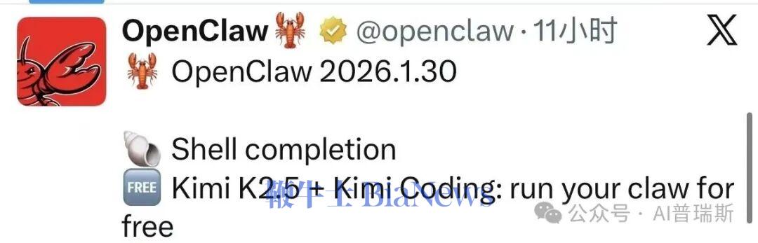Kimi K2.5成为OpenClaw唯一官宣免费主力模型