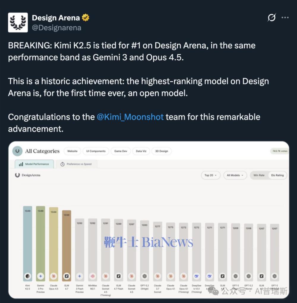 近期发布的Kimi K2.5模型也在多个榜单上成为全球排名最高的开源模型。
