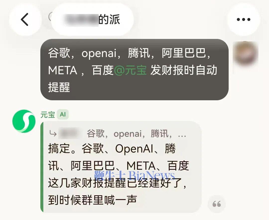 在1月26日的腾讯年会上,马化腾公布“绝密项目”元宝派。它扎根元宝APP内部,形态类似“AI增强版”微信群——元宝AI作为“群友”常驻其中,回答用户的问题,响应查询信息、梳理对话、修改图片、日程提醒等不同需求。