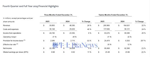 1月28日,Meta公布了2025财年第四财季的业绩。财报显示,Meta在第四财季Meta营收598.93美元,较去年同期增长24%;净利润为227.68亿美元,同比增长9%;摊薄后每股收益8.88美元,高于市场预期的8.23美元。