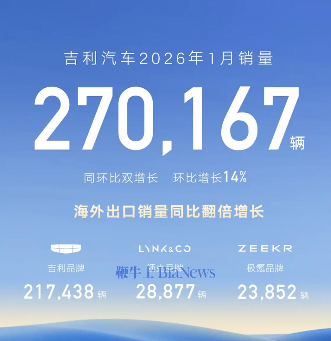 2026年1月,吉利单月销量超越比亚迪,意味着什么? 自2023年以来,比亚迪长期占据中国汽车市场月度销量冠军位置,其在新能源领域的先发优势和规模化效应令竞争对手望尘莫及。然而,2026年1月的格局发生了微妙变化。 从产品层面分析,2026年是吉利的“产品大年”,他们将在每个季度推出1-2款全新产品,涵盖多款重磅车型,加上银河和极氪呈现的稳健增长,为吉利集团整体销量的增长打下基础。 不久之前,吉利控股宣布2026年销量目标是345万辆,较2025年销量增长约14%。其中,吉利品牌约275万辆,极氪品牌约30万辆,领克约40万辆。新能源的目标是222万辆,出口销量目标64万辆。 吉利此次超越比亚迪,意味着比亚迪从2026年开始在国内的市场份额将受到真正有竞争力对手的攻击,因为传统车企新能源品牌将开始推出更有竞争力的产品。 《汽车商业评论》认为,还有一层原因或在于市场结构的演变。 随着新能源汽车渗透率处于阶段性饱和,或者需求疲软,单纯靠电动化已难以形成差异化优势,拥有燃油车基本盘的传统车企找到了机会和反攻的发力点。 吉利汽车集团就是这样的企业,但是我们还是希望这种反击不要过于猛烈。 2026年中国车市预判 从2025年12月同比下跌,叠加2026年1月销量下降来看,2026年或将是中国汽车行业进入“零增长”时代。 乘联分会预测,2026年1月狭义乘用车零售市场规模约为180万辆,环比下降20.4%,同比仅微增0.3%,全年增长的可能性不大。 车企进入零和博弈。 另有不愿具名的专家表示,2026年,政策从“加杠杆刺激”转为“托底+结构性引导”,购置税减免退坡、补贴机制与车价挂钩,意味着低价新能源车型的边际刺激减少。 很显然,价格战不会消失,只会“更隐蔽、更金融化”,降价逐步从指导价转到贷款贴息、置换补贴、保险/服务包等,考验主机厂与渠道的资金能力与风险控制。 但是,《汽车商业评论》认为,整体上,我们对车市不必悲观。可能由于今年政策改变导致消费者观望;同时,车企也因一时不知如何应对而观望,两者叠加导致车市第一季度不会有太大好转。但是,今年整体而言,普遍的价格战不会太激烈,对产业来说就是好事。 更重要的是,出海将成为每家车企正努力推进的业务板块。这方面,可以说是方兴未艾。 2026年的中国汽车产业,不必悲观。当政策红利消退、渗透率见顶,曾经依靠“电动化单点突破”的成功路径已难复制,只有那些能够构建"电动化+智能化+全球化"三位一体竞争力的车企,才会有更大机会。(汽车商业评论)