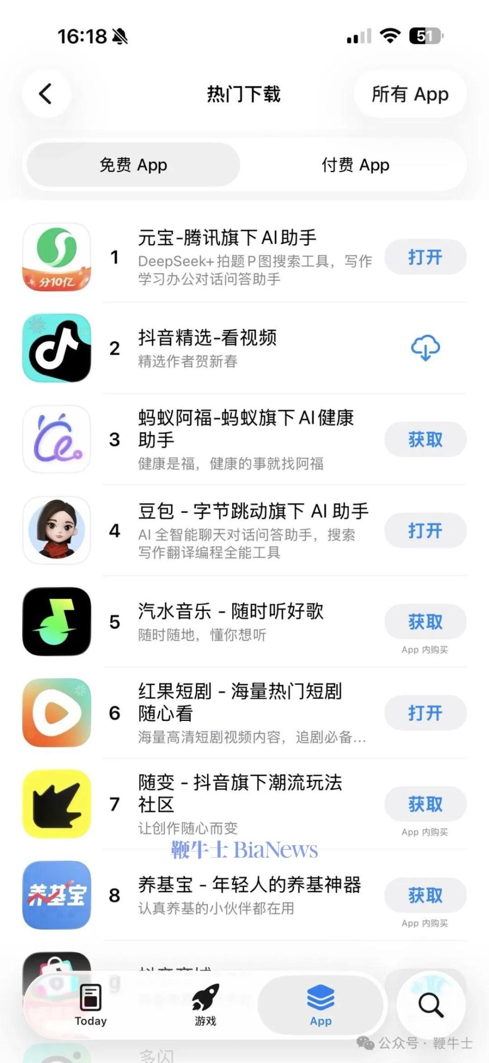 当你看到苹果免费下载榜被字节全家桶占领后,你就知道字节集卡活动开始了。