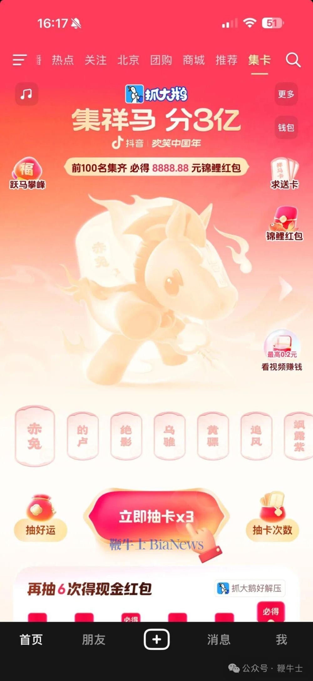 2月3日消息,鞭牛士发现,字节全家桶也参战春节红包大战了。