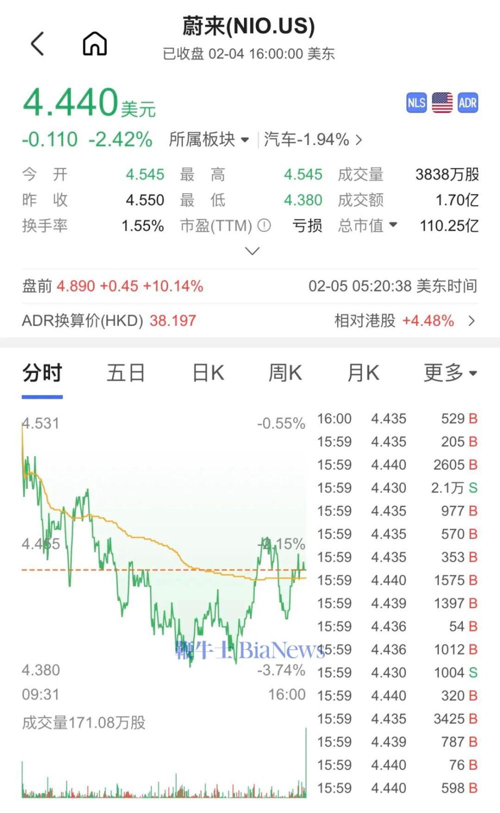 美股盘前蔚来涨超10%。截至发稿,报4.89美元/股,涨幅10.14%。