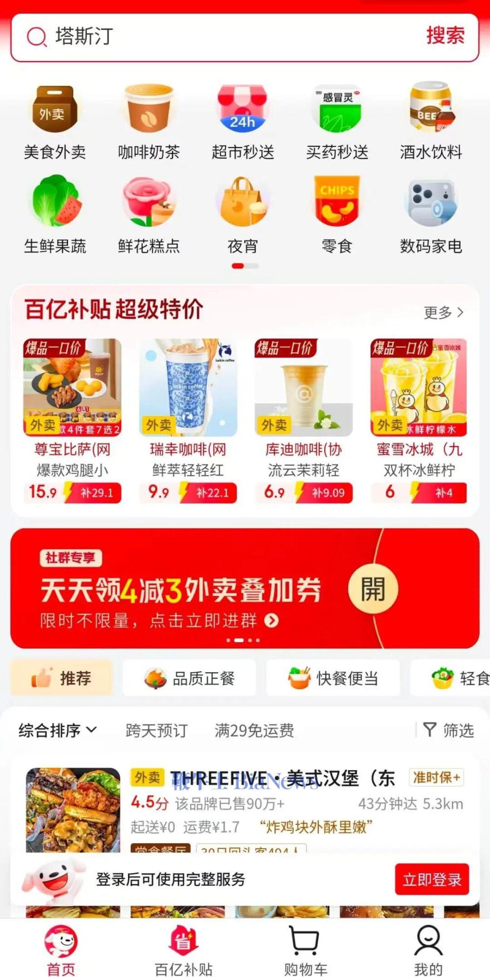 此次上线的京东外卖小程序覆盖品类较为丰富,不仅包含美食外卖、咖啡奶茶、生鲜果蔬等经典外卖品类,还拓展了超市秒送、买药秒送、酒水饮料、鲜花糕点、数码家电、夜宵零食等多元品类,实现了日常生活消费需求的一站式满足,无论是日常就餐、饮品选购,还是应急买药、商超补货,都能在小程序内完成下单。