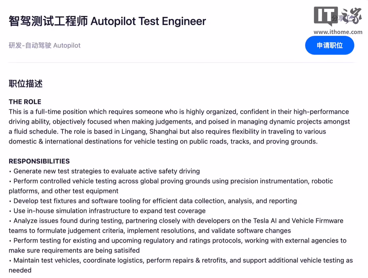 特斯拉上海招聘智驾测试工程师:会微控制器、赛车加分,有望为 FSD 入华作准备