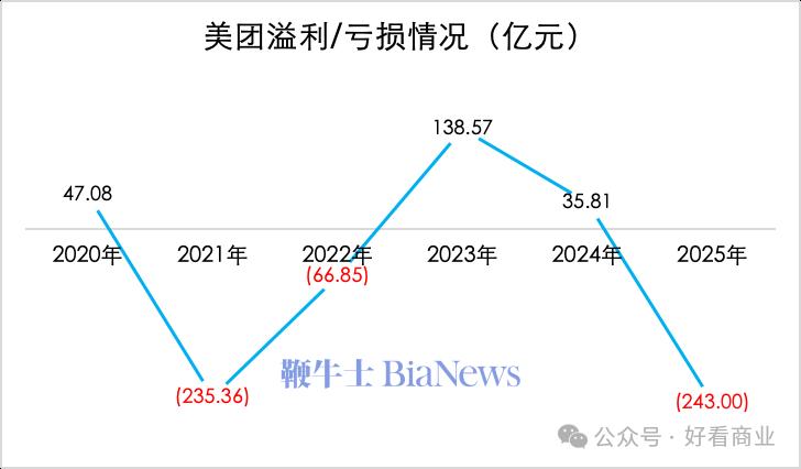 美团或迎上市以来最大亏损。2月13日,美团公告称2025年预计录得约233亿元—243亿元的巨额亏损。这主要是由于其核心本地商业业务由盈转亏以及加大海外投入所致。