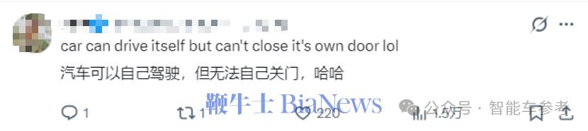 车能自己驾驶、处理各种复杂的路况,但没法自己关门……属实是把网友逗乐了: