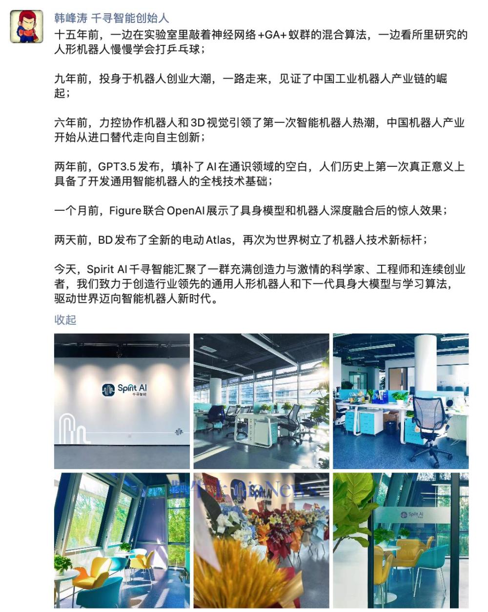 2024 年 4 月,千寻从孵化器搬到新办公室,韩峰涛在朋友圈回顾了过去的从业经历和中国机器人行业的变化。 在千寻新一轮融资发生前后,中国具身智能行业还出现了数笔大额融资,从 25 年 12 月到 26 年 1 月,银河通用、云深处、自变量机器人都宣布了数亿元至 20 亿元的新融资。 《晚点》与韩峰涛的这次访谈,从新近的资本市场变化开始,延展到了背后的行业变化,26 年竞争主题,和他对过去工业机器人创业的复盘。 我们提到了 1 次 VLA,0 次世界模型和 18 次客户,这是韩峰涛的肌肉记忆。 但他也反复强调:26 年不会是具身行业的落地生死之年,而是具身模型性能快速爆发的一年,千寻会把绝大部分精力放在模型上。这是一个经历过上一批智能机器人热潮起伏的创业者转变的决心。 不要为了融资骗投资人,不要互相攻击得这么狠 晚点:千寻新融了近 20 亿人民币,估值破 100 亿。这半年,整个中国具身领域还出现了数起大额融资,为什么更多钱现在涌向了具身? 韩峰涛:因为具身智能正处在 “黎明前的黑暗” 时刻。制约具身模型性能爆发的核心卡点——数据问题,已经被解决了。所以过去几个月,行业认知迅速收敛到了投具身大脑。 26 年的具身会非常像 23 年的大模型,如果你拿不到很多钱,模型性能跑不到头部,就没有上牌桌的机会了。 晚点:你看到了更强的共识,但我们也能看到具身行业现在非常喧嚣,有各种概念、技术路线和宣传 PR。 韩峰涛:尤其是过去的一个月,我们这次融资过程也发生了很多故事。我们应该构建一个更良性的市场。 晚点:发生了什么 “不够良性” 的竞争故事吗? 韩峰涛:比如找公关公司黑别人。 晚点:怎么黑法? 韩峰涛:比如黑我和高阳不合,这是我听过的最离谱的黑点。你要黑我韩峰涛不懂 AI,我也认了,我确实不如高阳他们做 AI 的。但你要说我和高阳经常拍桌子吵架,那你肯定是没见过高阳。 晚点:具身智能的竞争已经进化到这个程度了? 韩峰涛:很多都已经不是技术上的竞争了。一些负面评价很难自证。就像问我吃了几碗粉?我除了把肚子割开,没别的办法。 晚点:你希望看到的更良性的竞争是怎样的? 韩峰涛:不要为了融资骗投资人,拿订单骗,或拿开源的模型套个壳骗。不要相互攻击得这么狠。 具身是个大的时代机遇,也是中国在硬科技领域,第一次与美国站在同一起跑线上。过去我们在半导体、大模型和自动驾驶上都在追赶美国,但具身智能不同,我们在人才、数据采集和系统成本上的优势比美国更大。中国一定会成长出几家全球顶级的具身智能公司。 26 年的关键不是落地,是模型性能的爆发 晚点:新融近 20 亿后,千寻 26 年的目标是什么? 韩峰涛:首要目标是提升具身模型的性能,要做到具身大脑的全球 Top 3。 关键指标是获得 100 万小时的有效数据。我们过去发的最好的开源模型只用了 1 万小时的数据,26 年我们会有 100 倍的数据。 还有 10% 的精力会放在跟产投方合作,让具身机器人在他们的场景里落地。营收目标是 1 个亿。 晚点:在同样估值规模的具身公司里,千寻对营收的计划相对小,为什么? 韩峰涛:第一,模型没到临界点,强行落地没有意义。现在的具身模型,做大部分任务都需要大量微调,只有当 zero-shot(零样本学习)就能实现 70%-80% 的成功率时,机器人才能快速放量。 第二,现在具身行业乱就乱在都在讲落地。有些是披着具身外壳的传统自动化或上一代 AI;有些是签了大订单却还没交付。有很多投资人认为 26 年是落地的 “生死之年”,落不了地行业就没了,我们非常不认同。 26 年的主题其实是数据量级和模型性能的突破,而不是落地和收入竞争。真正大规模落地应该在 27 年下半年到 28 年。 晚点:如果你的这个核心判断错了,可能会是错在哪儿? 韩峰涛:这个问题我们内部也讨论过很多次,因为我们会定期思考 “我们会怎么失败”。 目前看比较乐观。因为硬件和供应链已相对成熟,客户有需求,公司也有钱,核心的卡点就是模型。而根据我们自己看到的 Scaling Law 曲线,基模能力的提升没有太大悬念。 晚点:如果 26 年确实是模型能力的淘汰赛,你觉得能上牌桌的公司具备什么特点,或者已经做到了什么? 韩峰涛:第一,肯定要有很强的 AI 背景。第二,账上的钱足够多。第三,在中国,还是要有落地的规划,得有强大的产投方以及商业化能力。 晚点:有什么关键的观察指标吗? 韩峰涛:获得有效数据的加速度。 晚点:25 年下半年才成立的一批新公司,获得数据的时间还够吗? 韩峰涛:如果拿了很多钱,可以。因为很多 know-how,更早成立的公司已经踩过了,我们花一年半,他们可能只需要 7、8 个月。 几个月的差距目前不是很大的问题,很多投资人看不出来,市场上的钱也多;而且具身大脑今年会跑出来好几家公司。 晚点:你认为具体是谁? 韩峰涛:我反倒觉得 25 年出来的这些新公司做成的概率更高。因为更早成立的公司,很多主要在冲商业化,已经不是大脑公司的基因了。 晚点:千寻自己不也是 24 年成立的吗? 韩峰涛:但我们 24 年成立第一天就聚焦模型的主航道。很多同行也问我:“为什么千寻这么淡定?我们被谁谁卷得不要不要的。” 我说原因很简单,卡点解决之前,要聚焦解决卡点,也就是提升模型能力;卡点解决之后,才看速度。 在中国创业,一定要在大厂下场前把自己变成中厂 晚点:现在很多大公司也在投入具身智能,如小鹏、小米、腾讯、字节,