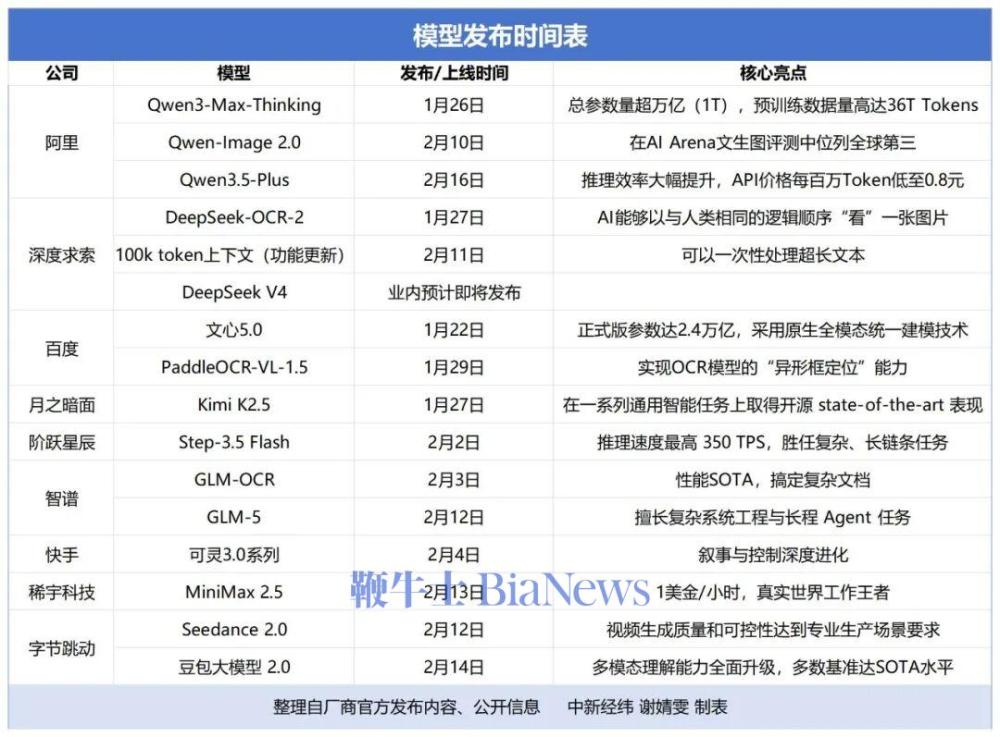 据中新经纬不完全梳理,自2026年1月底以来,已有9家头部企业上线新模型或更新产品,大模型领域正迎来一轮密集发布潮。