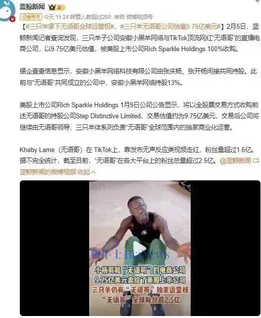 疯狂小杨哥麾下的三只羊,终于完成了资本市场的关键一跃——成功借壳美股上市公司Rich Sparkle,正式登陆纳斯达克。曾名不见经传的Rich Sparkle,在完成借壳后更名为ANPA,股价一度从发行价4美元飙升至180美元,上演了一场堪称魔幻的资本狂欢。Rich Sparkle这家公司主业是金融印刷,说白了就是给上市公司印招股书、做排版翻译,规模极小,2025年7月登陆纳斯达克时,发行价仅4美元,市值刚过5000万美元。主业低迷,市值低廉,没有复杂的资产负债包袱,这样的公司,正是借壳上市的绝佳载体。对三只羊而言,与其花几年时间走IPO的层层审核,不如直接“借壳”入场,省时又省力。交易的核心,是收购Step Distinctive 100%股权,估值高达9.75亿美元,折合人民币约67.7亿元。支付方式是增发新股。Rich Sparkle定向增发约7500万股新股,以此作为收购对价,直接交给Step Distinctive的股东。而Step Distinctive这家海外公司,它由两只主体合资成立:一方是三只羊旗下的安徽小黑羊,持股13%;另一方是TikTok顶流网红Khaby Lame,也就是全网熟知的“无语哥”,持股高达49%。更值得玩味的是,三只羊注入的,并不是整个集团的资产,仅仅是海外电商和IP相关业务,国内的直播主业、供应链体系,全都被排除在外。如今回头看,三只羊谋求上市,并不是一时兴起,早在2020年,就已经露出了苗头。2020年8月底,三只羊在香港高调设立分公司,还特意请来TVB前总经理坐镇,一时间,外界纷纷猜测,这是三只羊冲刺港股IPO的前奏。毕竟,香港作为国际金融中心,靠近内地市场,无论是投资者认知,还是监管适配性,都更适合三只羊这样的国内直播企业。那时的三只羊,正处于巅峰期。小杨哥凭借“反向带货”“家庭喜剧”的风格,成为抖音首个粉丝破亿的主播,旗下签约主播超2000人,2022年GMV突破160亿元,一度被称为“直播界黄埔军校”。彼时的三只羊,或许真的有底气冲击港股。但一场突如其来的“美诚月饼事件”,彻底打乱了所有计划,也让三只羊的国内发展陷入停滞。2024年9月,三只羊直播间因虚假宣传“香港美诚月饼”被监管部门处罚,罚没金额高达6894万元,全矩阵账号停播整改。这场风波不仅让公司信誉扫地,核心主播纷纷解约,而复播后单场销售额不足巅峰期的零头。更严重的是,这场事件引发了连锁反应,三只羊多次卷入品控风波,国内业务举步维艰。港股IPO的大门,此时已经悄然关闭。A股、港股的监管审核本就严格,对于有违规记录、品控存疑的企业,审核只会更加严苛。无奈之下,三只羊将目光转向了美股。相比A股、港股的严格审核,美股的上市门槛更低,对企业的盈利要求、合规记录包容度更高,更看重“未来预期”而非“当下实力”。如果没有美诚月饼事件,或许三只羊真的能顺利登陆港股,不用绕远路借壳。但没有如果。直播行业的监管趋严,自身品控的漏洞,让三只羊失去了在国内资本市场立足的底气,只能转身投向美股,试图靠海外业务“东山再起”。至于股价为什么会暴涨45倍这么离谱,或许是多了一堆新标签。交易完成后,公司将由Khaby Lame继续领导,而三只羊旗下的安徽小黑羊,将获得他全球范围内的独家全链运营权。这份运营权涵盖方方面面:直播与短视频电商策划、TikTok商店运营、跨境供应链协调、售后服务,还有当下最火的AI数字人商业开发。全球顶流IP+AI新物种+跨境电商,这三个标签叠加在一起,足以让资本市场疯狂。毕竟,在当下的资本环境中,“讲故事”远比“做实业”更容易吸引资金追捧。但这种靠标签或者概念撑起的股价,就像空中楼阁,迟早会崩塌。果不其然,短短一个月时间,热度褪去,概念降温,ANPA的股价断崖式下跌,一度跌破10美元。还有三只羊借壳上市后,给出了一个雄心勃勃的预期:未来年销售额有望达到40亿美元。如果这个目标真的能实现,ANPA的股价或许真的会再度狂飙,三只羊也能真正在海外市场站稳脚跟。三只羊的海外之路,到底能走多远?小杨哥能否真正实现从“国内顶流”到“全球玩家”的跨越?资本市场在观望,行业在观望,每一个关注直播行业的人,都在观望。拭目以待,或许是对三只羊,也是对当下直播行业资本化转型,最客观的评价。(转载自互联网品牌官)