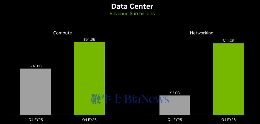 网络业务第四财季收入110亿美元,同比增长263%,环比增长34%。增长动力来自面向GB200和GB300系统的NVLink计算架构持续应用,以及以太网和InfiniBand平台的发展。这部分业务主要用于连接AI服务器集群,反映出客户对大规模算力部署的需求。