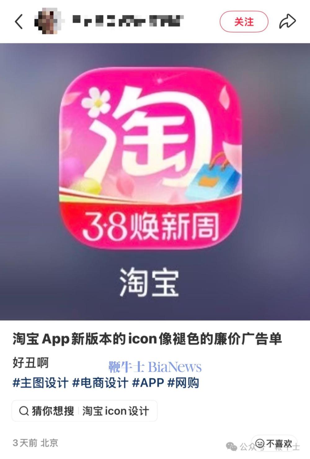 有评论直言,“淘宝App新版本的icon像褪色的廉价广告单,好丑啊。”