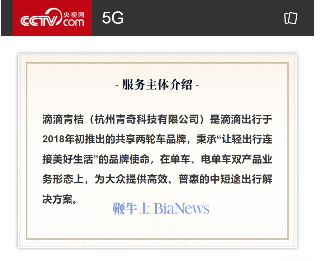 据央视网信息显示:滴滴青桔(杭州青奇科技有限公司)是滴滴出行于2018年初推出的共享两轮车品牌。