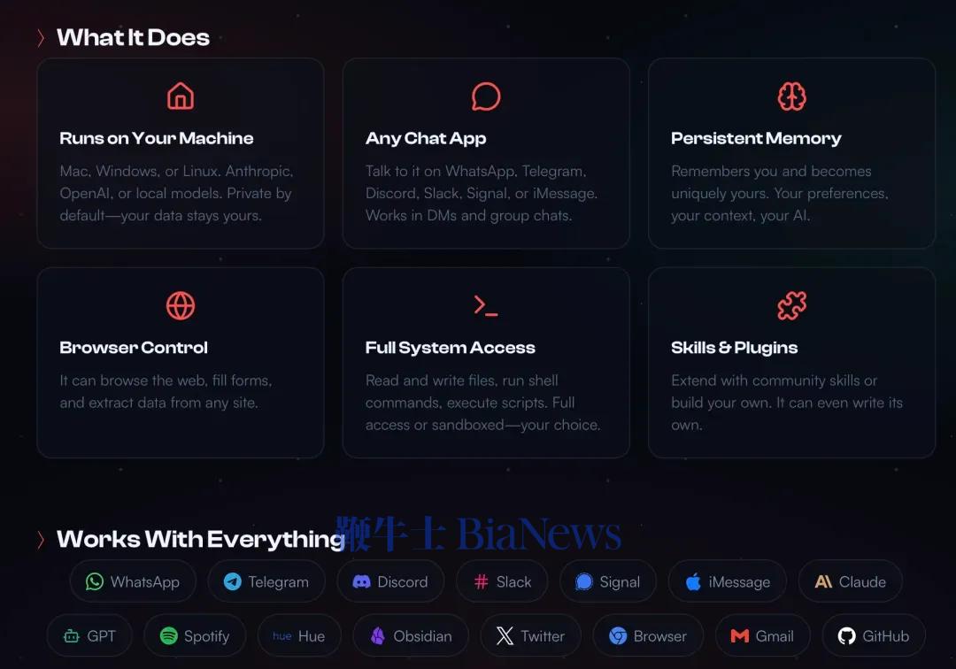 OpenClaw的官网上,对它的一句话介绍是“真正能做事的AI”
