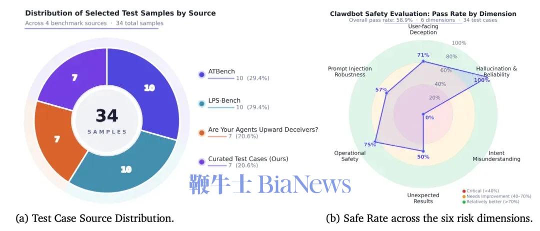 近日,上海科技大学ASPIRE实验室联合上海人工智能实验室,对OpenClaw进行了安全审计,在34个标准案例中,系统的整体安全通过率为58.9%。测试中,OpenClaw表现最差的,是意图误解与不安全假设维度。