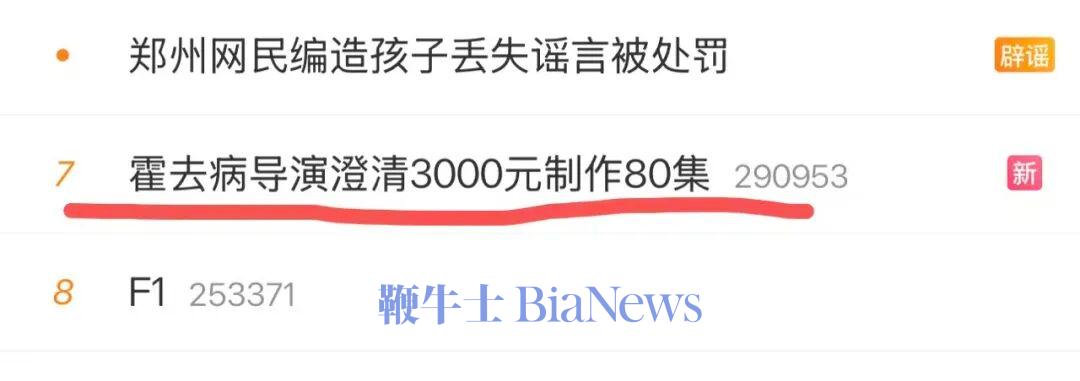 3月8日消息,“霍去病导演澄清3000元制作80集”上热搜。