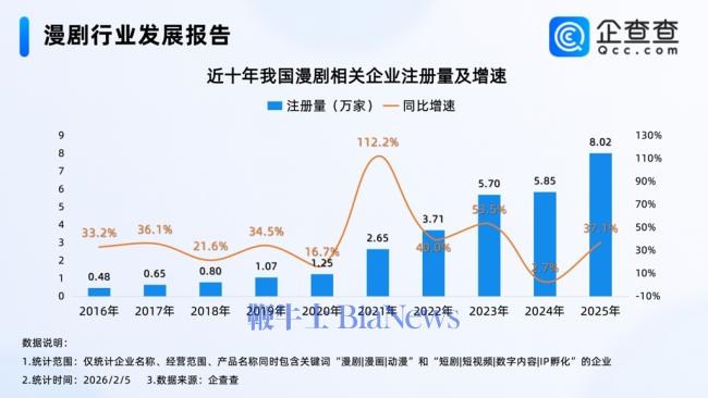 2025年被业界视作“AI漫剧元年”,这一年抖音每月TOP 5000短剧中,全AI生成微短剧一路从1月的4部,增长至11月的217部。其中爆款《斩仙台下,我震惊了诸神》仅用12人团队、30天制作,便拿下超10亿播放、ROI超110。 巨量引擎内容消费行业战略负责人陈闻清预测,2026年漫剧市场规模将突破220亿,贡献短剧行业50%的增量。DataEye预估,2026年,国内漫剧用户规模将从2025年的约1.2亿增至2.8亿。 这是一个百亿级风口,各类玩家蜂拥而至。“原来做传统影视、动画、网文、游戏,以及做信息技术、智能体研发的,全都在往赛道上跑。”罗琳凡观察,赛道中也不乏跨界者,如有的本是投融资出身,希望通过漫剧切入AI赛道。 企查查数据显示,2025年新增注册漫剧相关企业8.02万家,同比增长37.1%。截至2026年2月5日,现存24.5万家,2026年已新增注册7307家。 酱油、灵矩、花生等公司,在2025年初率先踩中技术风口入局AI漫剧,已成长为头部玩家。剧点短剧&灵矩动漫创始人&CEO王树波透露:“我们2025年5月启动项目,七八月份时月产仅2-3部,年底已达50-70部,预计今年3月底可达150部。” 第一波玩家的成功,正吸引更多人加入。一位电商广告从业者表示近期入局了AI漫剧,手上的商家广告资源是其优势。大量年轻人也加入其中,有大二医学生主动报名了AI视频全流程训练营;小红书上,各种转型做AI漫剧的笔记下方,不少网友留言“求带”。今年1月上线的一站式短剧创作工具平台“有戏AI”,在5天内涌入1.3万创作者,首月收入规模折合成ARR(年度经常性收入)超3600万元,市场热情高涨。 各互联网巨头也在密集下场。2025年下半年起,阅文、七猫、番茄小说开放数万部IP授权。11月,字节红果短剧率先推出独立漫剧App;12月,百度以“柚漫剧”与“七猫漫剧”完成双线布局;2026年2月,腾讯上线独立漫剧App“火龙漫剧”。快手、B站、爱奇艺、优酷、芒果等也纷纷成立漫剧频道、布局AI创作工具、推出激励政策。2026年春节,AI漫剧首次跻身各平台春节档,标志着长短视频大厂全面入局。 爱优腾入场被视为行业信号。腾讯“火龙漫剧”上线当日,中文在线就曾公告腾讯以2320万元向其采购大批漫剧内容。爱优腾的核心优势在中长剧和真人剧,爱优腾全面入局后,精品内容需求将迎来爆发。业界也观察到,院线已开始行动,预计很快将有AI院线电影出来。 市场快速扩张的同时,行业价格阶梯逐渐清晰,已形成三大主流类型:动态漫(含表情包/沙雕漫剧)、2D/3D漫剧、AI仿真人剧,市场天花板与成本差距显著。其中,2D/3D漫剧是当前平台流量主力,AI仿真人剧则正成为行业重要增长极。 价格与成本方面,罗琳凡介绍,动态漫、沙雕漫,平台报价已降至400-600元/分钟,120分钟约5-6万元,而精品剧(包括精品2D/3D漫剧与AI仿真人剧)普遍在50万元以上。成都艾门韦思总经理朱文煦透露,AI类真人短剧正按3万/分钟在召集,对A级以下的剧集未来大平台或不再接收,A类短剧成本被压缩到35万元/部以内。 利润率上,西安飞映科技王天海曾透露,AI真人解说漫目前性价比最高,2人10天可完成30-40分钟内容,利润率超50%,但平台已限制低质解说漫;AI漫剧(含2D/3D)利润率约30%-40%,沙雕漫则因内卷利润率降至10%以下。南京拿手好戏缪轶表示,精品AI真人剧利润率超60%以但产能受限,10人团队1个月仅能出1部;量产剧利润率约20%-30%,但能走量。花生CEO吴海明则透露,目前AI漫剧收益天花板在100万-200万元,现象级漫剧可达1000万元。 行业增长势头仍在继续。罗琳凡表示,去年多家企业漫剧产量涨了30倍以上,2026年预计至少再涨3倍,热度或持续至2030年。