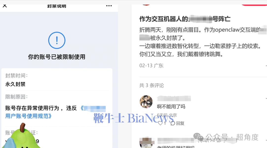 龙虾openclaw这几天火到爆,大街小巷,街头巷尾,从大佬到小白,到地方,都在讲养龙虾,“龙虾X条”扶持都出现了,总感觉事情在向很怪的方向走。具体原因是:平台安全机制检测,设备环境异常,可能存在多个异常账号、网络及手机号存在异常,暂时关闭了社交互动功能。还有朋友因为用龙虾搜股票信息,被雪球、微博、小红书限制访问。俗称,IP被封。这个图是雪球的,页面提示:由于您访问的URL有可能怼网站造成安全威胁,您的访问被阻断。原来是他配置的skill里,涵盖了小红书、抖音、B站、微博、贴吧的爬虫。还有位朋友,前几天和往常一样做淘宝链接的读取和转化,结果淘宝账号被封。页面提示:您的账户近期访问行为存在异常,涉嫌不当获取使用平台商业信息,包括但不限于爬虫工具、违规浏览器插件、租借账号、共享、出售数据等,可能存在安全风险。系统将限制该账号的部分访问功能,预计2026-03-X时后恢复正常,请自查整改,再次违规将升级处置。客服给到的说法是:页面上的提示,以及频繁IP变化和机械性操作。他没有使用龙虾,他的理解是,淘宝的风控策略升级了。他还透露,其朋友在北京家里运行部署了龙虾的电脑,某im即时通讯软件被强制踢出,封号3天。他认为综合得出结论,互联网平台已经针对龙虾的实际操作,调整了安全和风控策略。2月份,有用户称,作为openclaw交互端的某IM被永久封禁了。综上可见,内容类、交易类平台对龙虾这种爬虫机制进行了防备,或者说平台本就反爬虫,而龙虾暴露了其爬虫的本质。用户在使用龙虾时,触发了平台反爬虫机制,未来也可能对龙虾部署专门反爬策略。即时通讯类软件,因为是龙虾一大载体,可能会因为龙虾的火爆,防御机制由紧到松。