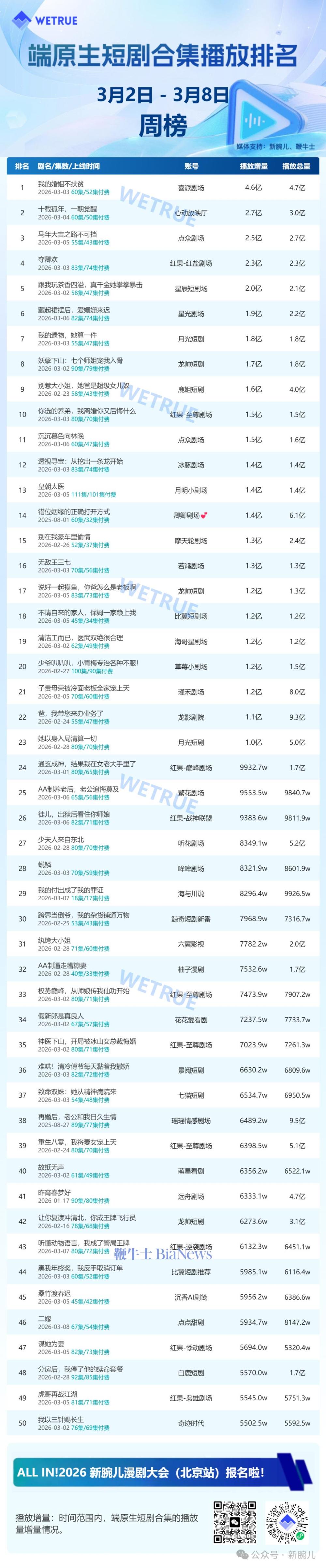 从周榜看到,榜单前三名均为AI仿真人短剧,AI仿真人短剧已成为成主流。