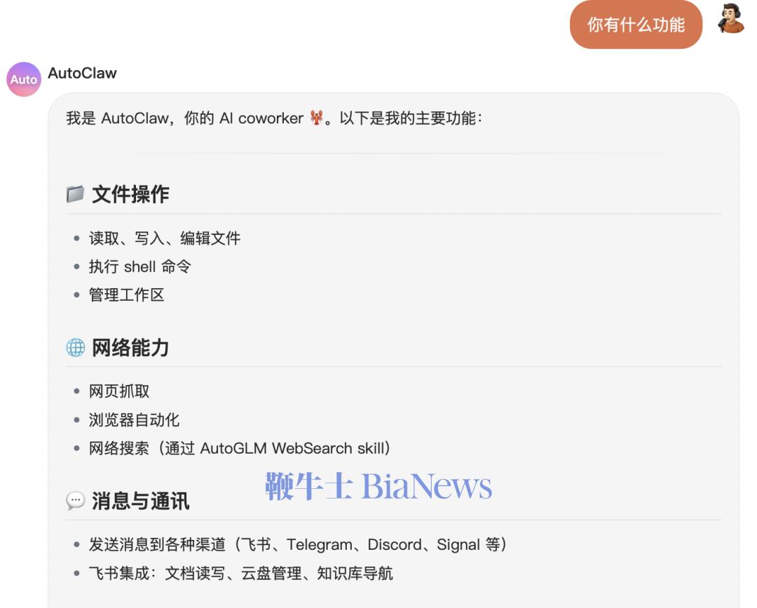 从产品形态上看,AutoClaw试图解决的问题很明确:将OpenClaw从“开发者框架”转变为“消费者应用”。前者需要用户自己准备API Key、配置环境,后者只需要用户登录账号、通过对话框下达指令。