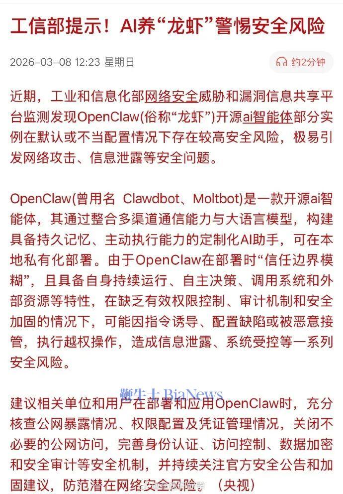 公安部网络安全等级保护中心前几天刚发了警告,这东西的安全风险已经从“内容乱说话”升级成了真实的“系统级威胁”。