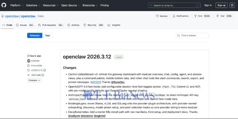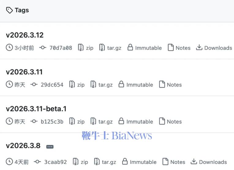 周三刚刚发布了2026.3.11,第二天下午又迅速刷出了2026.3.12。