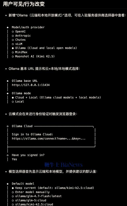 另外一个明显降低门槛的变化,是Ollama的完整接入流程。