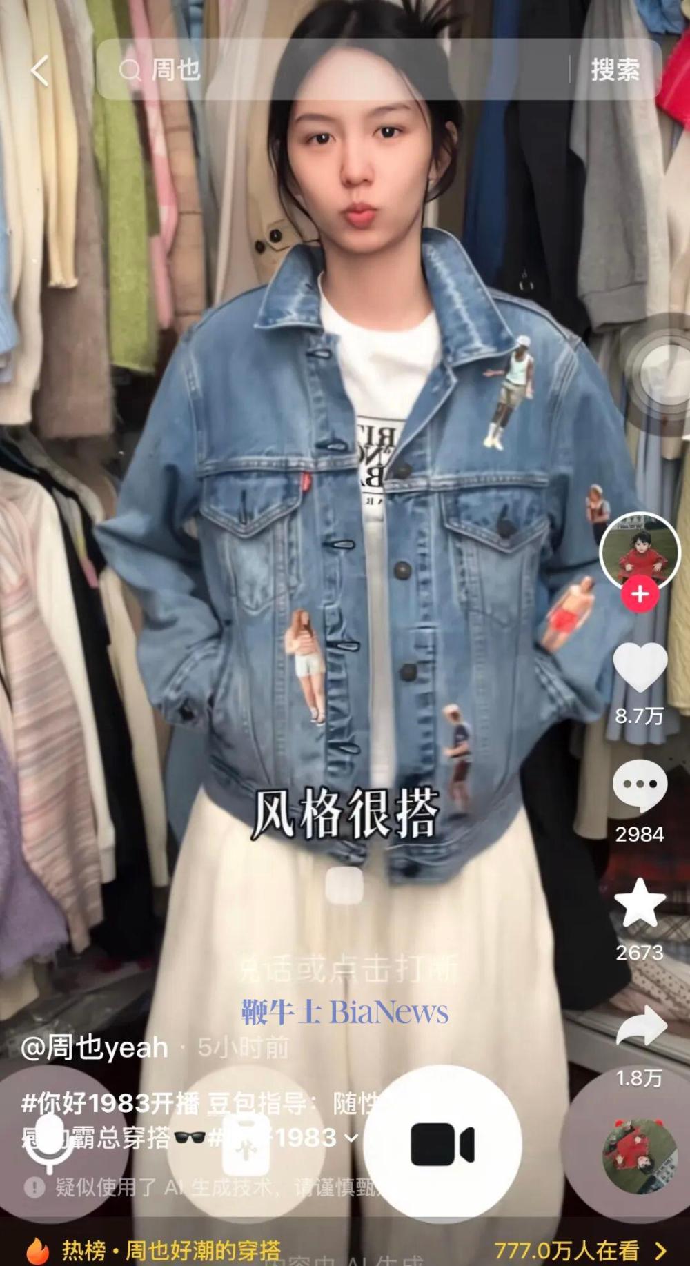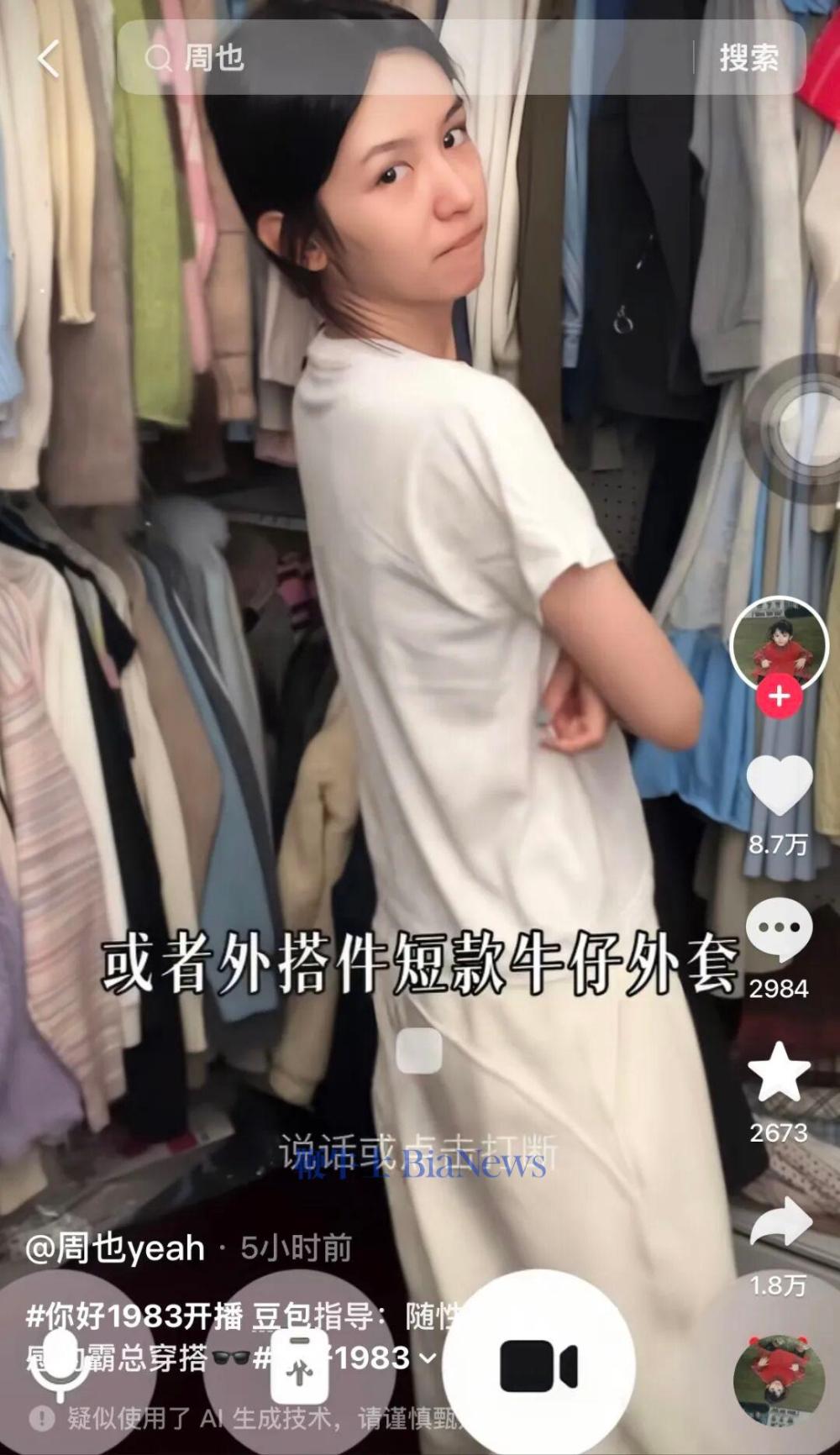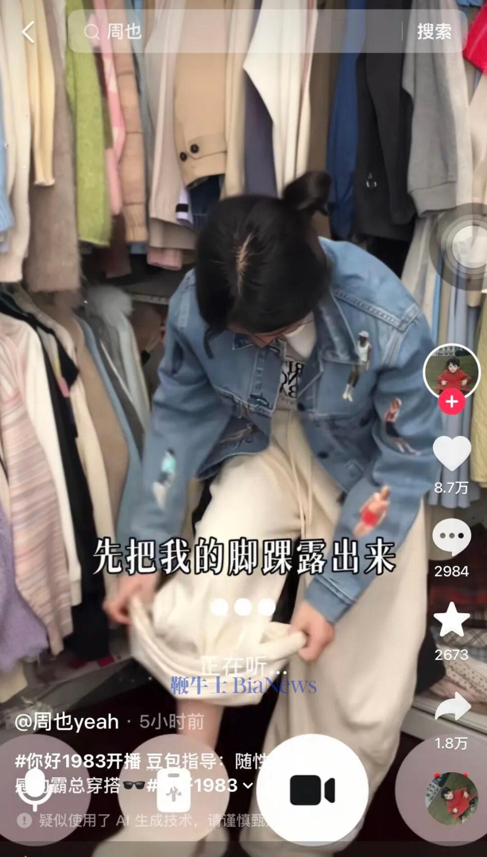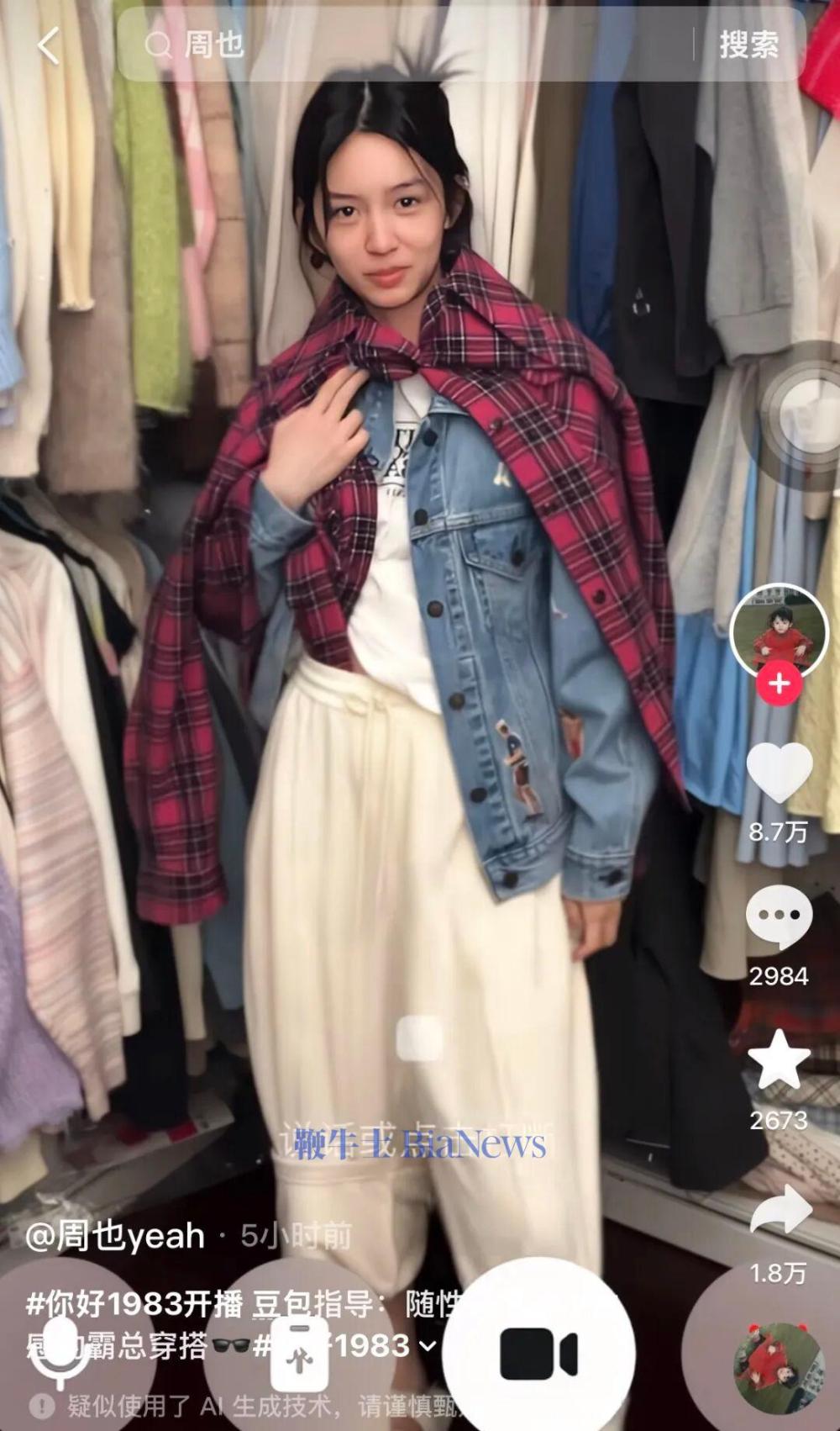 起初,周也身穿白色短T、米白长裤入境。豆包评价,这种搭配很清爽,就是颜色和版型太顺了,有点扁平。建议搭配短款牛仔外套。