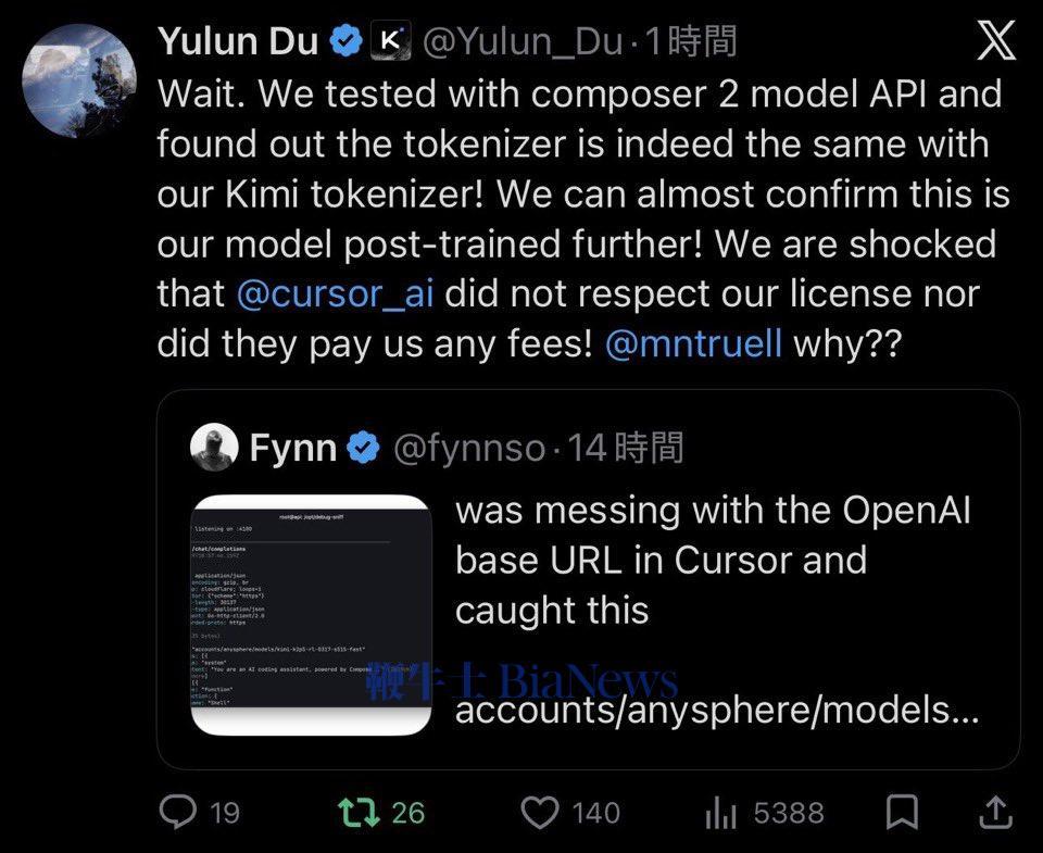 月之暗面预训练负责人杜羽伦,点名Cursor CEO: