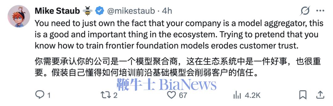 「如果你是套壳AI应用,就好好当你的模型二道贩子,别装得自己很懂模型一样。」
