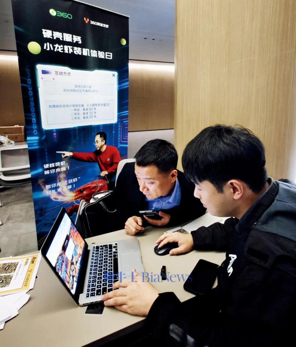 3月15日,湖北武汉,360集团在武汉光谷举办免费装“龙虾”活动,吸引近百名群众参与。“AI龙虾工程师”在武汉保利光谷中心为现场用户安装部署“360安全龙虾”。图/视觉中国