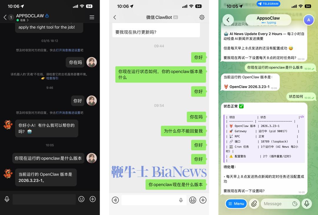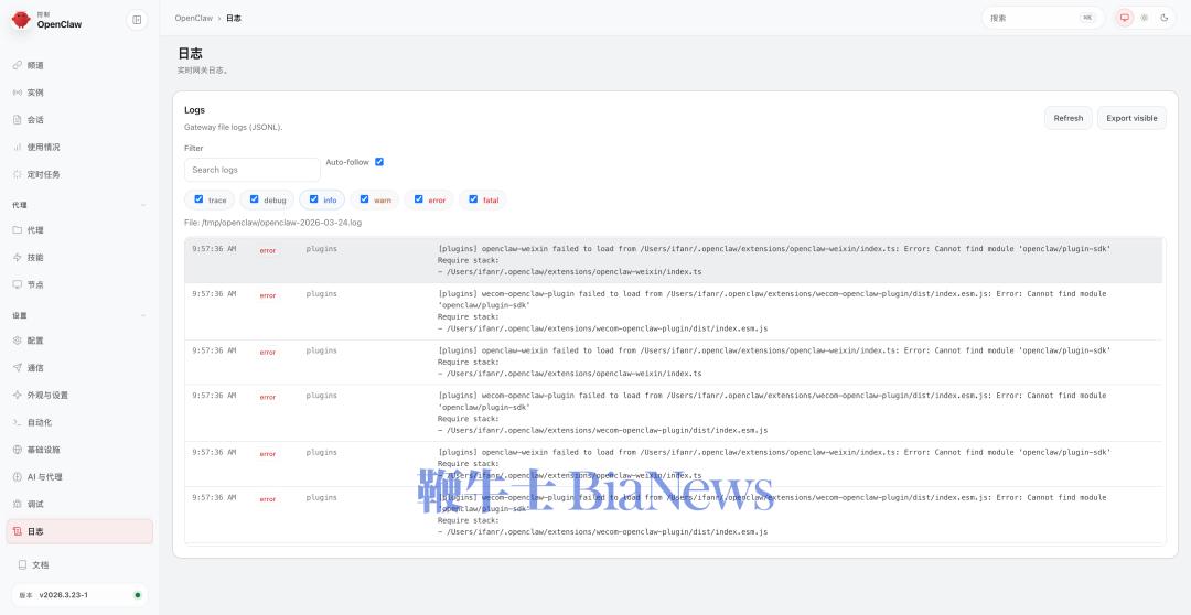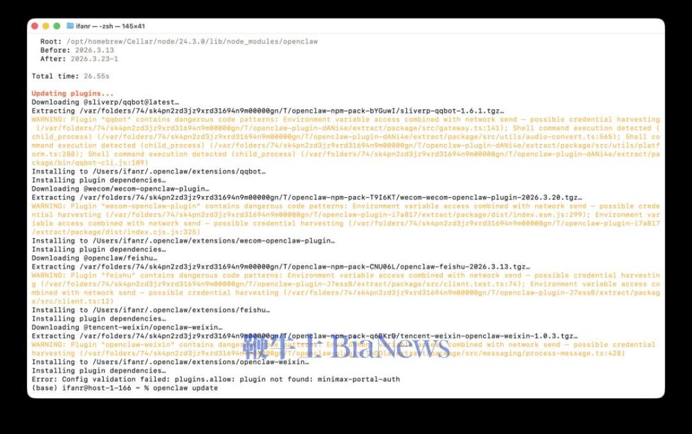 一觉醒来,很多网友发现微信里的虾不能用了,原因是 OpenClaw 昨天一次大更新。APPSO 在开头强烈建议,如果你想在微信养虾,先别升级到 OpenClaw 最新版。当我们尝试把手边的 OpenClaw 更新到最新版本时,果然在更新的过程中,就接连报出好几个警告。不只是微信(下图中 openclaw-weixin),我们之前配置的腾讯系 qqbot、企业微信 wecom-openclaw-plugin,以及飞书等聊天应用,都遇到了「包含危险代码模式」的警告。我们在从 3.13 版本更新到 3.23 的过程中,腾讯系的 qqbot、企业微信和微信几乎都遇到了类似的警告。 所谓的检测到危险的代码模式警告,一般是说在相关的插件代码里,有一些写法,可能带来安全风险、稳定性问题,或者被恶意利用。它和报错不同,报错是代码已经出现明确问题,程序没法正常继续,或者结果不可信。更新完成后,我们尝试在微信里面和 Clawbot 对话,控制部署在本地的 OpenClaw,连发好几条消息都没有回应。查看 OpenClaw 的官方日志,我们发现,在微信里发给 Clawbot 的信息,完全不能同步到 OpenClaw 处理。反而好几条都是 error 的报错信息,提示找不到 OpenClaw 的 plugin-sdk 的模块。