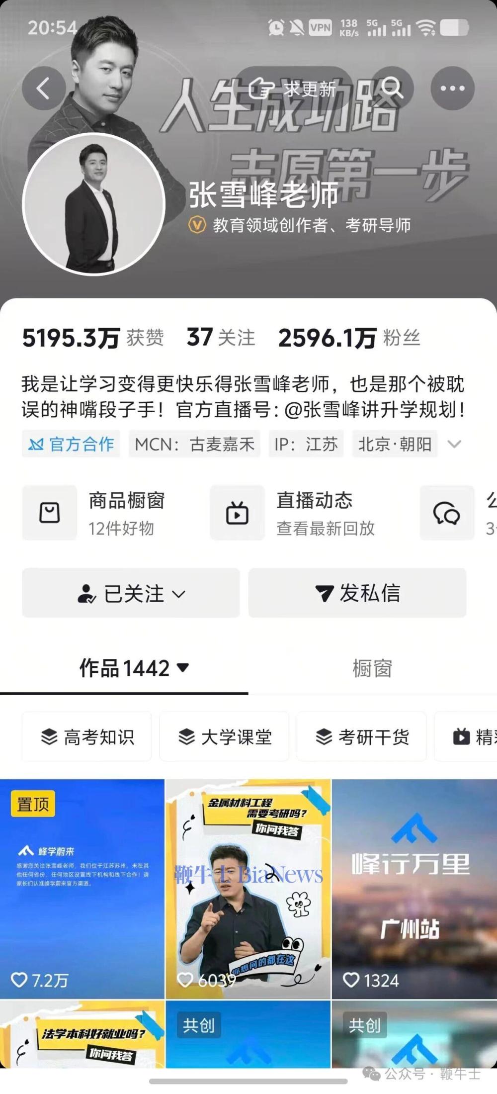 3月24日,鞭牛士发现,教育博主张雪峰多个社交平台头像及背景已变灰。