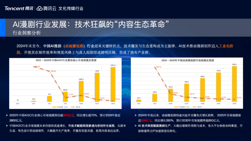 市场规模上看,2025年,整体AIGC产业规模已接近800亿,其中漫剧产业规模近200亿,在如今AIGC快速发展的时代,漫剧行业毋庸置疑会有更大的发展。