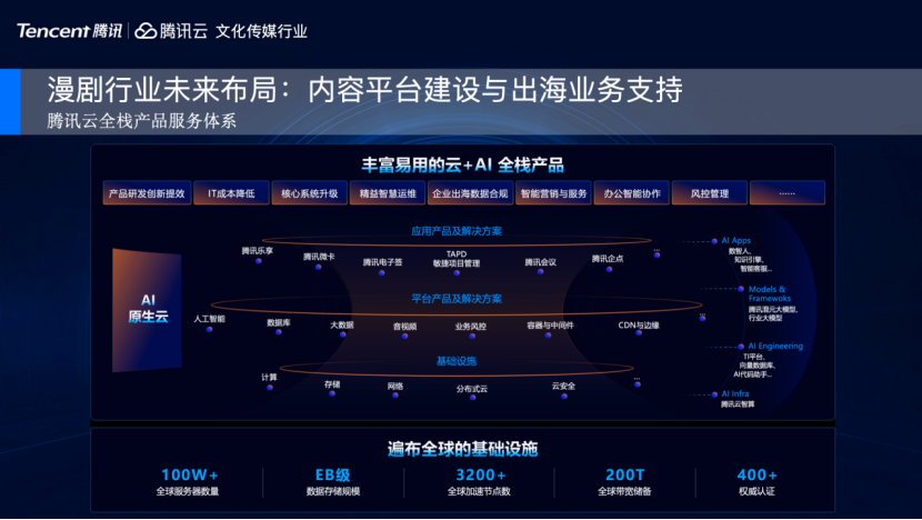 内容平台建设与出海业务支持方面,腾讯云也提供了全栈产品服务体系。当然,这是腾讯云的看家本领。