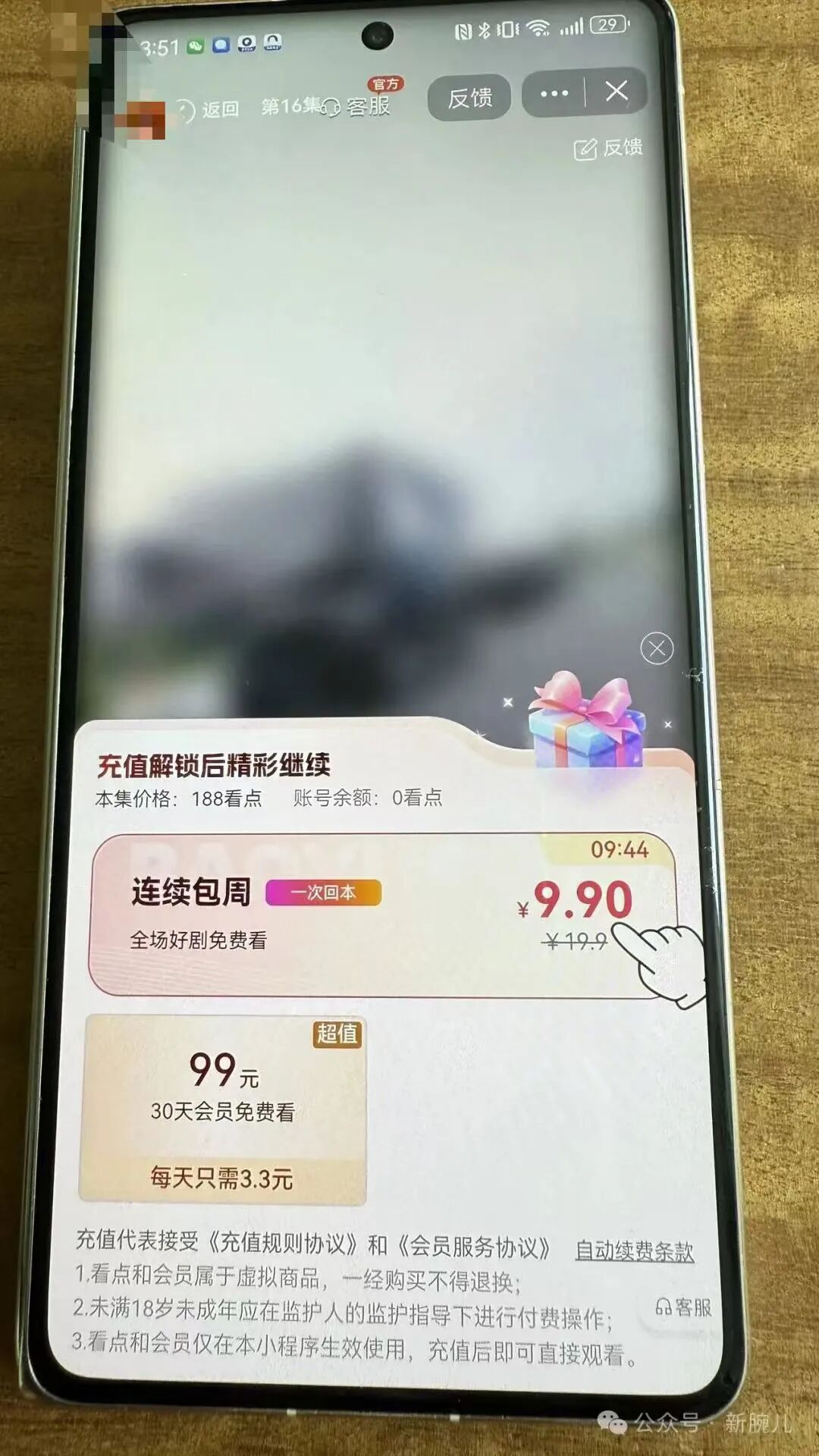「随便点了短剧一次没注意,每个星期扣了19块,迷迷糊糊一个月几百又没了,主站上全是套路。」