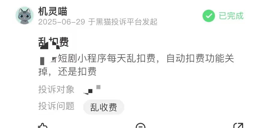 各个平台上,在主站消费过短剧的用户,对短剧消费体验的评价如出一辙。接连指出平台上存在的短剧自动续费乱象。