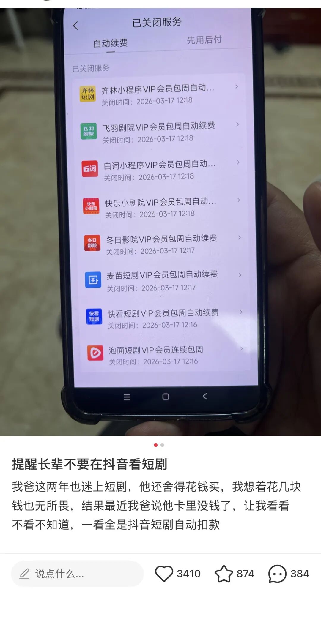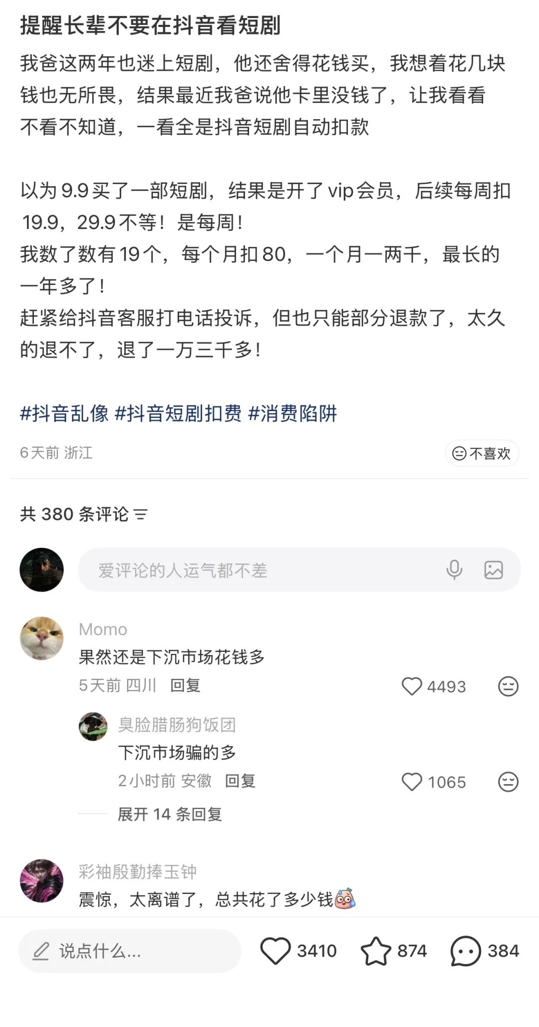 「留心爸妈手机里抖音的自动扣费!!!」