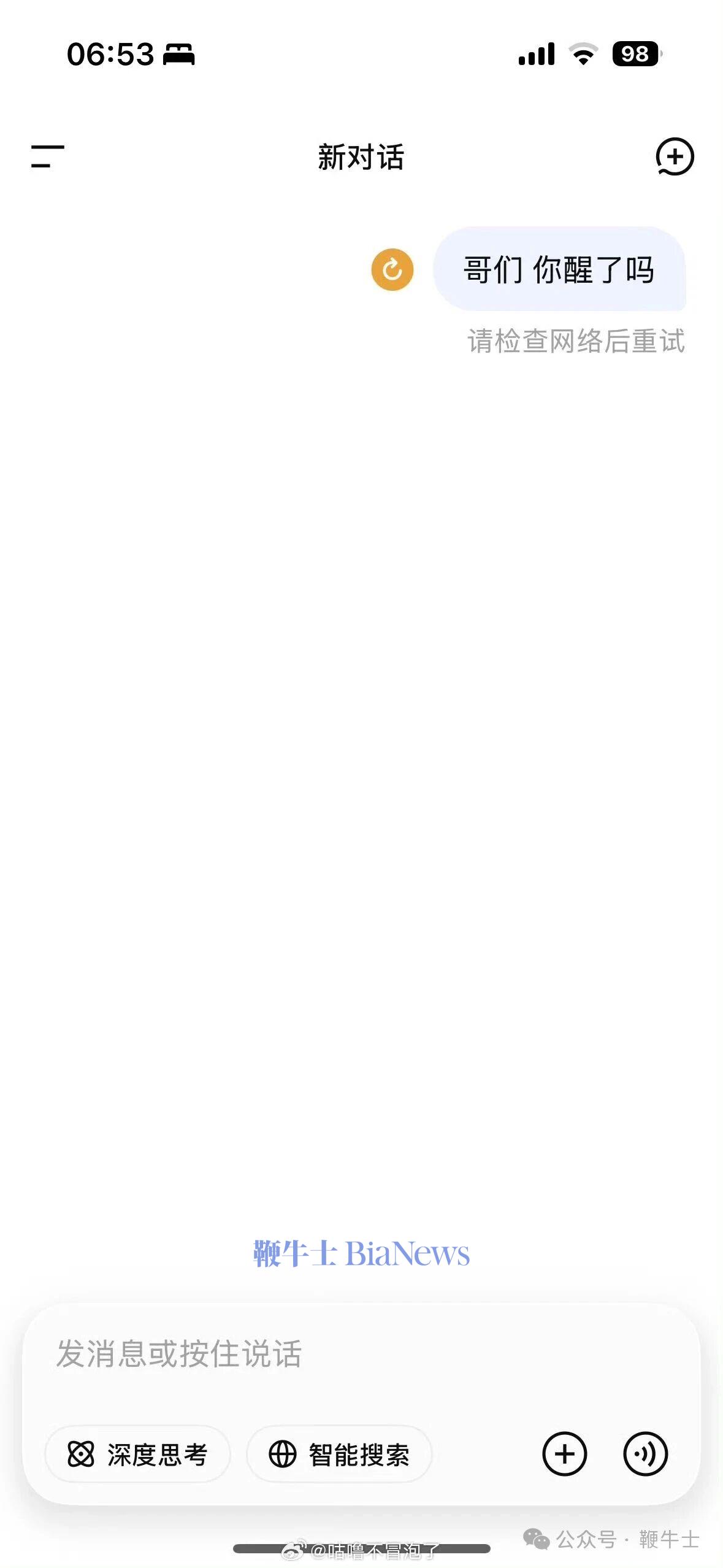 用户反馈网页端和App频繁弹出“服务器繁忙”提示,页面持续转圈或完全无法登录,部分高阶功能(如“深度思考”模式)被严格限流,实测4小时内仅能使用1次。