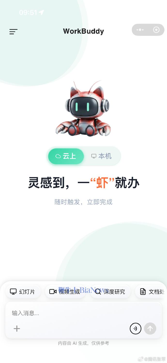 腾讯版龙虾workbuddy推出小程序:可直连本机或云上使用